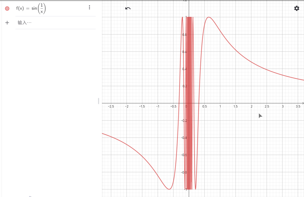 - 右极限: $x \to 0^+$ 当 $x \to 0^+$ 时,$x$是一个正数,趋近于 $0$。此时,$\dfrac{1}{x} \to +\infty$。因此, $\lim\limits_{x \to 0^+} \sin\left( \dfrac{1}{x} \right)$ 因此,右极限也不存在。